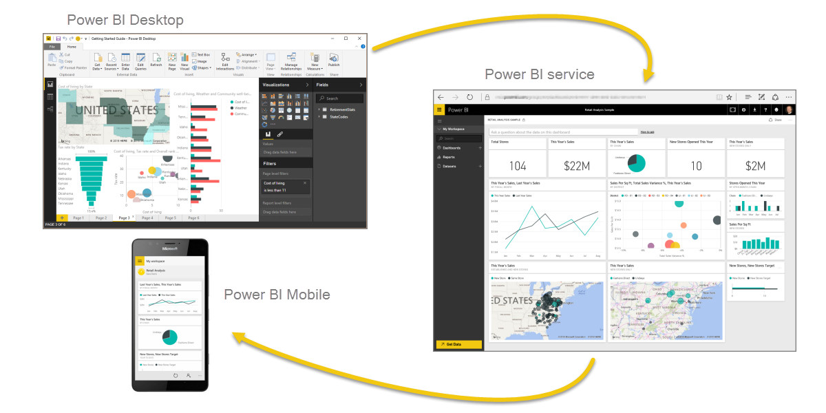 Power BI est un ensemble de services logiciels, d’applications et de connecteurs qui œuvrent ensemble pour transformer des sources de données disparates en informations visuelles immersives et interactives. Vos données peuvent être sous forme de feuille de calcul Excel ou de collection d’entrepôts de données hybrides locaux ou sur le cloud. Power BI vous permet de vous connecter facilement à vos sources de données, de visualiser et de découvrir ce qui est important, et de partager ces informations avec qui vous voulez